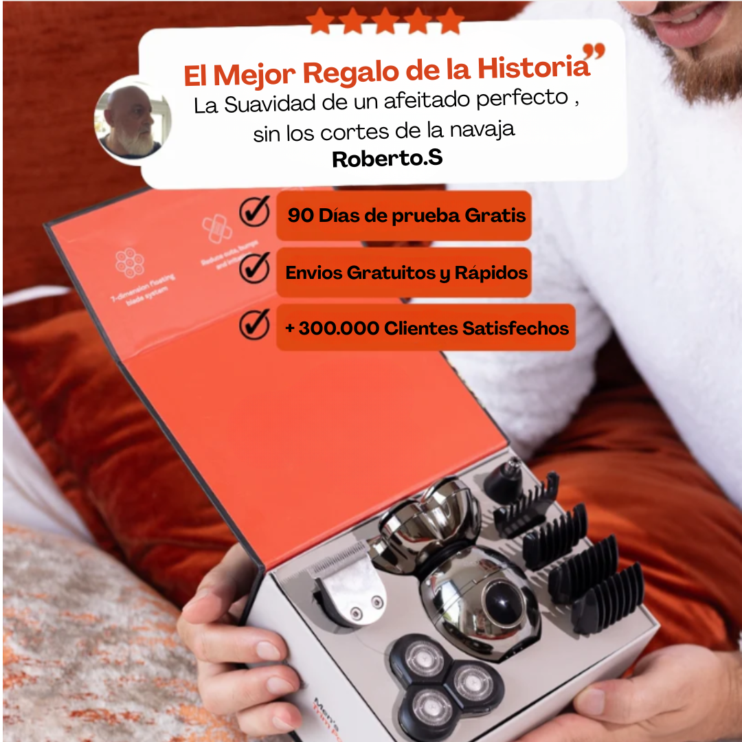 Diseño ergonómico con sistema de cuchillas magnéticas SmoothShave™ para un afeitado rápido, seguro y sin irritación.