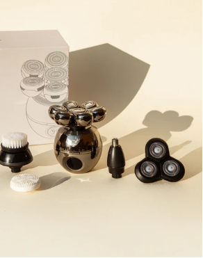 Incluye cabezales intercambiables para recortar barba, limpiar el rostro y masajear el cuero cabelludo.